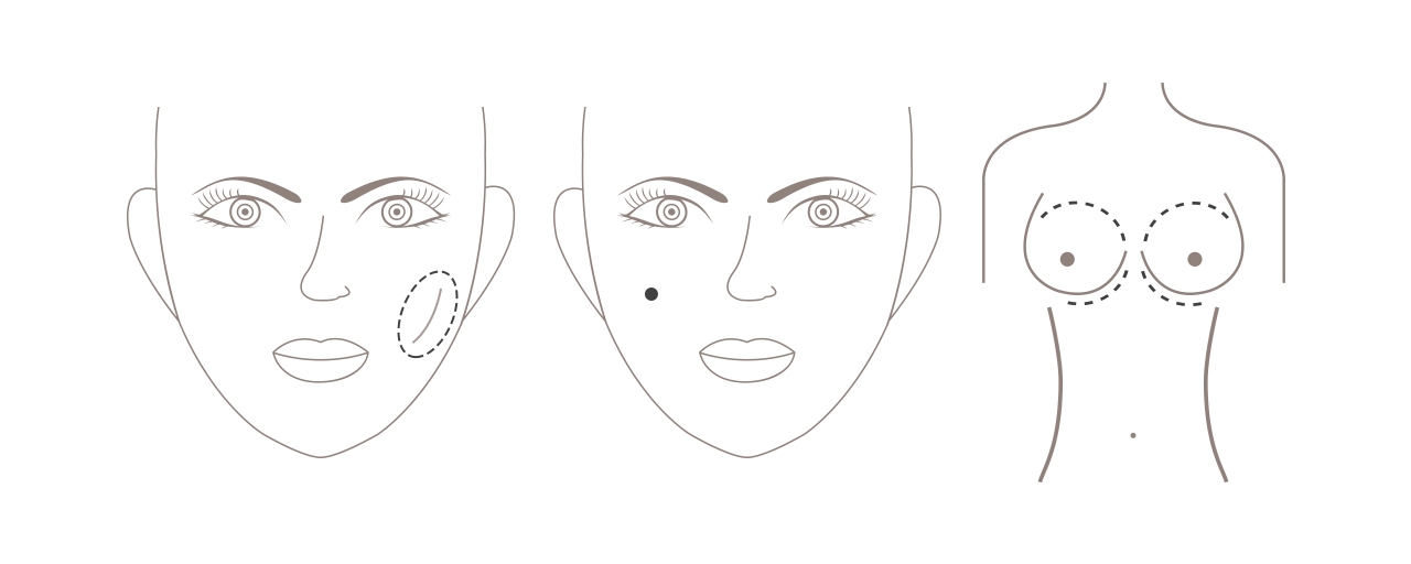 As lesões cutâneas podem ser benignas, nesse caso retiradas quando há dúvida no diagnóstico ou quando há queixa estética por parte do paciente, ou malignas. O tratamento dos chamados canceres de pele (melanoma e não melanoma) pode requerer reconstruções complexas com o uso de enxertos e retalhos, tornando-se fundamental a expertise de um cirurgião plástico. Na condução desses casos, existe grande preocupação e atenção para que haja remoção completa das lesões com margem de segurança e, ao mesmo tempo, preserve-se função e mantenha-se cicatrizes dentro de parâmetros esteticamente aceitáveis.